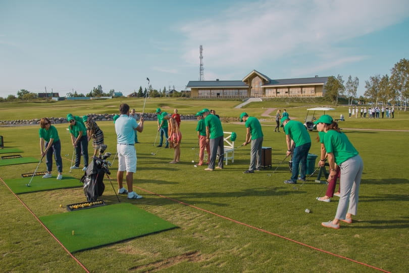 Планируя провести спортивную часть мероприятия до торжественной, важно выбирать физическую активность, которая не заставит гостей попотеть, не испортит наряды и прически дам. Бывает, компании организуют для сотрудников банкет после «веревочного курса» и просят брать с собой два комплекта одежды, но это все-таки слишком. Лучше сочетать застолье с чем-то менее изматывающим, и гольф в этом отношении идеален: движение, небольшая нагрузка, никакого ущерба имиджу.